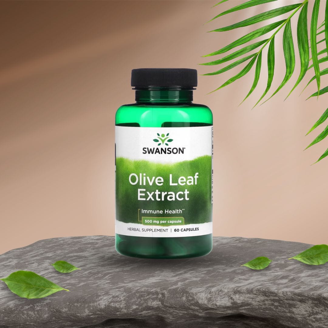 🌿 Swanson Olive Leaf Extract inneholder 500 mg ekstrakt fra olivenblad (Olea europaea) per kapsel – standardisert til minimum 20 % oleuropein. Olivenblader har vært brukt i middelhavsregionen i århundrer og er kjent for sitt høye innhold av bioaktive polyfenoler.